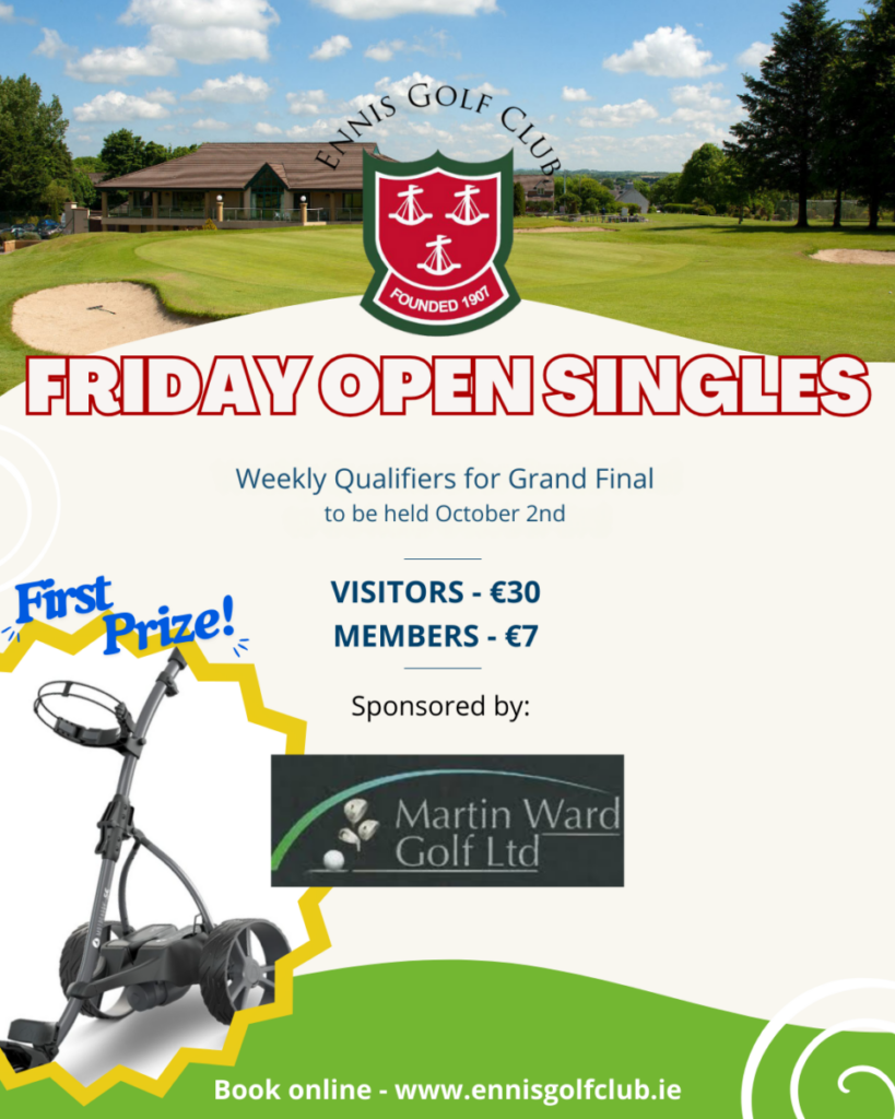 Ennis Golf Club is delighted to launch our Friday Open Singles, beginning on Friday 3rd April, with members and visitors very welcome to take part.